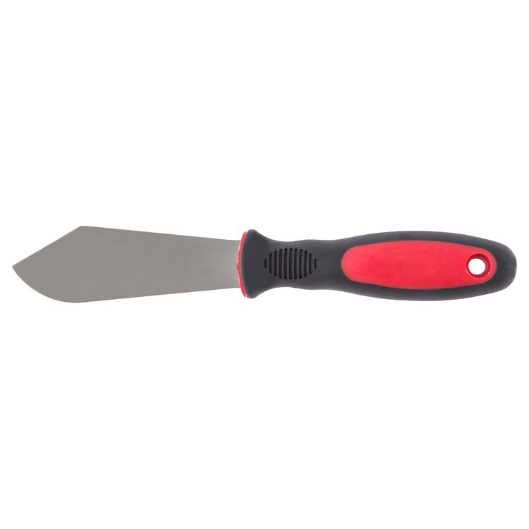 Traditional, shaped putty knife with soft-grip handle.