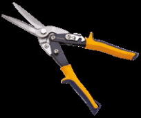 Designed for cutting cold rolled and stainless steel Long straight and wide curve cut Drop forged alloy steel blades for a longer cutting life Serrated blades grip the material to be cut Spring loaded handles for a fast smooth cutting action Automatic release of safety catch when handles are squeezed Soft grip handles for comfort and grip