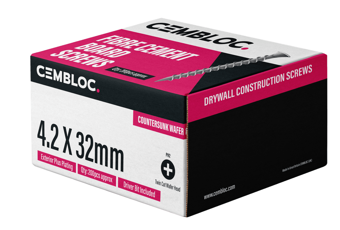 Cembloc FCB Self Drilling Fibre Cement Screws are a highly corrosion resistant, easy drilling and fixing solution for the fast and secure installation of underlayment to subfloors and walls. Made with a compact trim-head that ensures a flush finished surface, preventing floor coverings from settling in countersink recesses, these screws will help you to protect the appearance of your finished project and avoid damage in the process. They are also coated with an exterior-grade finish to provide superior corrosion resistance.