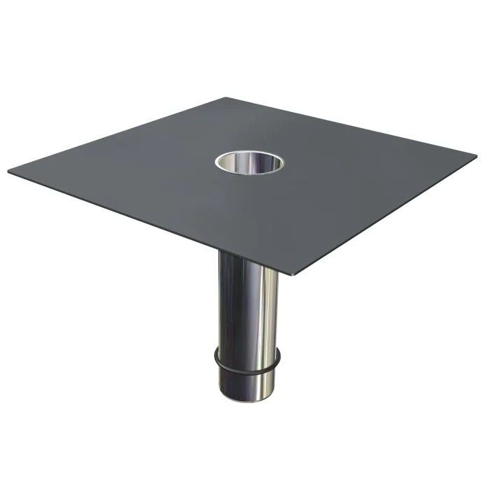 Stainless steel flat roof drainage outlet with sealed dark grey PVC membrane flange