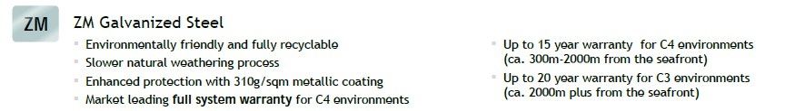 ZM steel is a breakthrough in corrosion protection that combines zinc, 3.5% aluminium, and 3% magnesium in the 310g/sqm metallic coating.