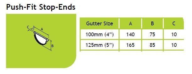 The Alumasc 125mm Infinity Steel Universal Half Round Gutter Stop End is a strong, long-lasting and reliable push-fit gutter end cap that will seal and finish off the end of a length of gutter. Easy to install and designed to direct rainwater into the downspout in your guttering system, this innovative gutter component is made with a permanent anti-corrosion coating that is three times better than galvanised steel.