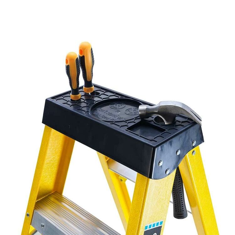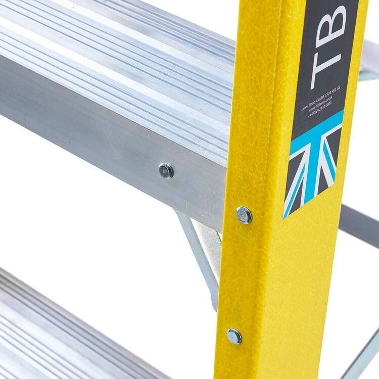 The TB Davies Swingback Step Ladder incorporates a multi-functional tool tray with non-conductive stiles, making them ideal for working around electricity.