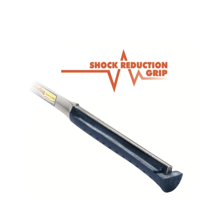 The Estwing Slaters Pick has a bonded and moulded Shock Reduction Grip which offers the utmost in both comfort and durability while reducing vibrations caused by impact. The head and handle are forged in one piece and have a fully polished head.