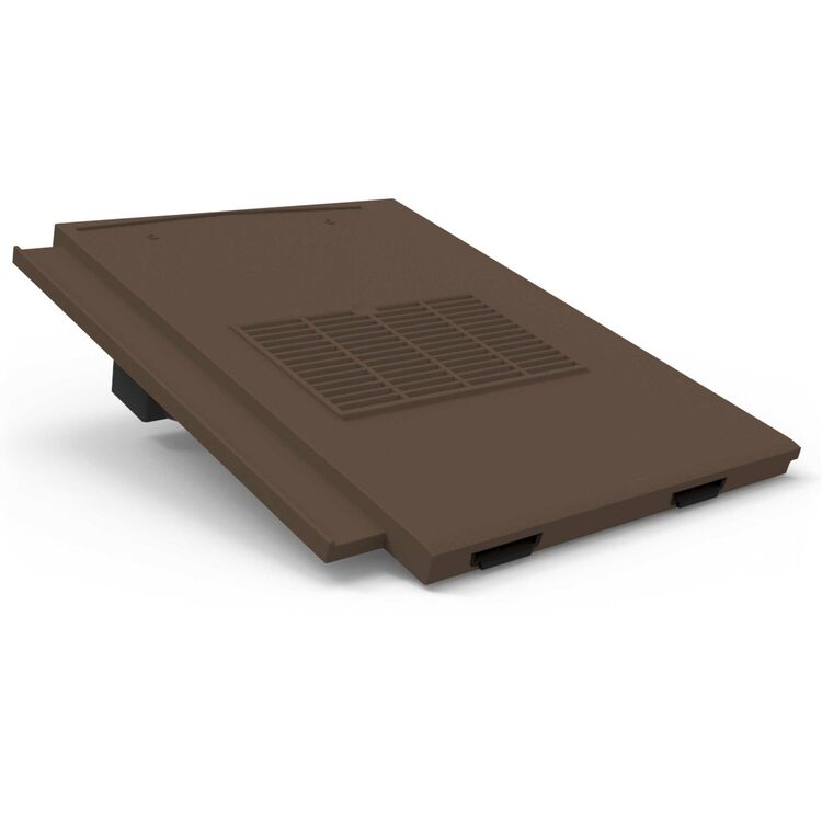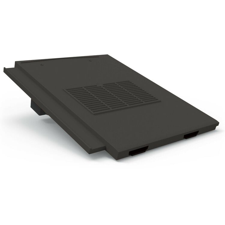 The Manthorpe Thin Edge In-line Tile Ventilator provides a quick and simple solution to the problems of roofspace ventilation and mechanical extraction/soil stack termination through a roof covered with a thin leading edge, large format concrete tiles. The vent is designed to replace a single tile and maintain an unbroken appearance to the roofline.