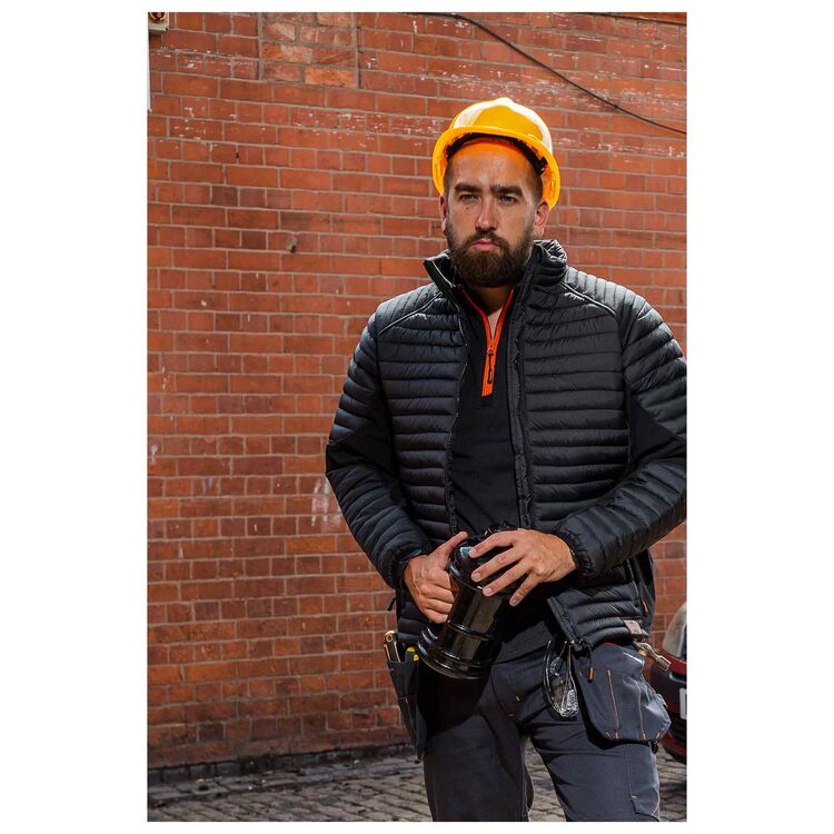 Whether you're working in construction sites or in workshops, this Unbreakable Stamford Black / Orange Trimmed Microtech 1/4 Zip combines versatility, durability and fashion effortlessly.
