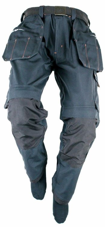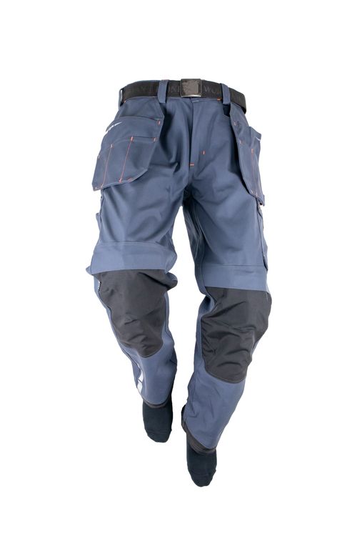 Two top-loading knee pad compartments, two holster pockets along either hip, two multi-purpose leg pockets, two back patch pockets, a ruler pocket and a hammer loop are all included in the work trousers. The pockets and lower legs of the trousers are also finished with fluorescent detail to boost user awareness. Every interior seam is triple sewn for durability.