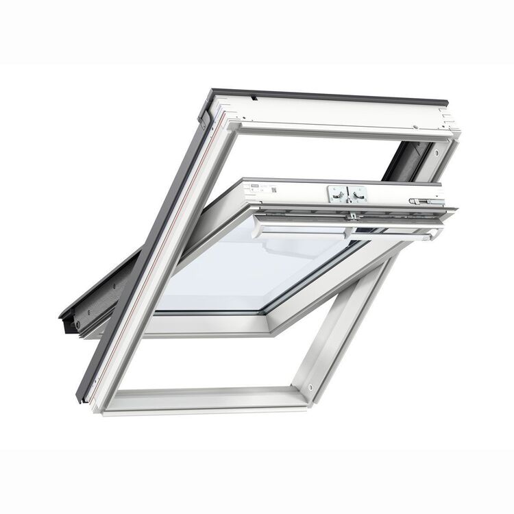 The VELUX GGL FK06 SD5N2 Conservation White Painted Centre Pivot Window For Slate Roofs is a premium quality roof window made specifically for traditional, classic, conservation, heritage and period properties. This VELUX roof window features discreet and stylish black external profiles and is fitted using a recessed installation, allowing the window to sit lower in the roof structure than standard installs for a sleek, unobtrusive and streamlined look that's in keeping with the aesthetic of a listed building or conservation area.