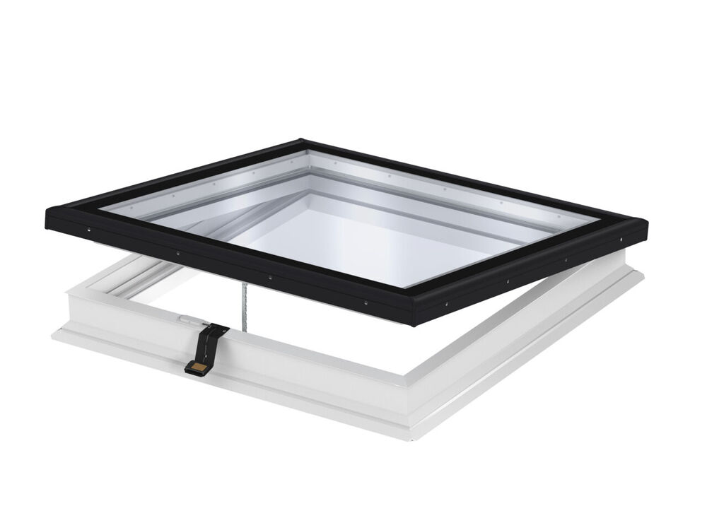 This mains powered electric window for flat roofs comes with a flat glass cover and can be installed in roof pitches between 2°-15°. The easy-to-clean coating on the glass minimises cleaning frequency and gives a clearer view in case of rain.