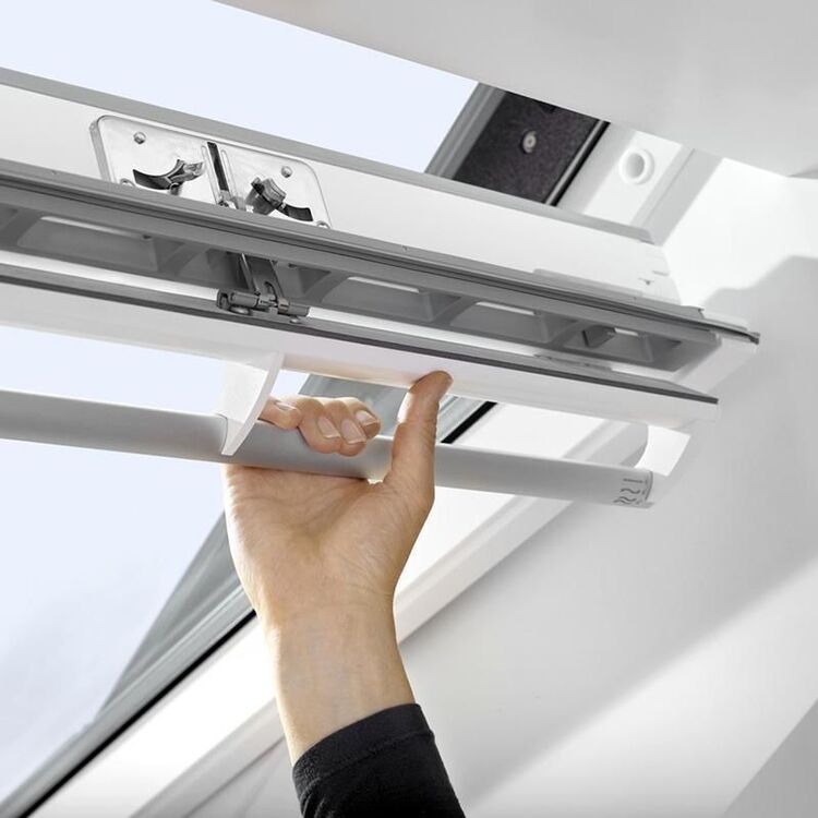Put fresh air at your fingertips with a centre-pivot VELUX roof window. A top-operated roof window is easy to operate - even with furniture beneath. The innovative top control bar allows you to install the window lower than an equivalent bottom-operated window to get an excellent view while standing and when seated.