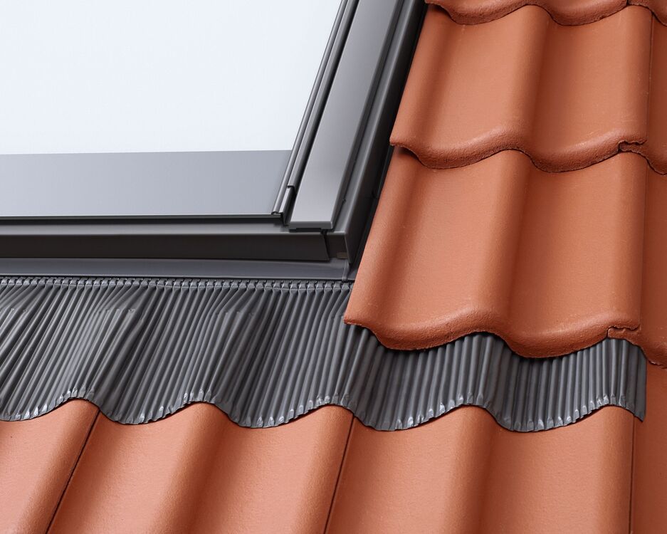 VELUX replacement flashings make it easy to replace VELUX roof windows without removing the existing lining. The roof windows are simply replaced in the existing aperture. This lets you enjoy a new roof window without the extra work involved in interior decoration or bathroom retiling. Profiled roofing material EW