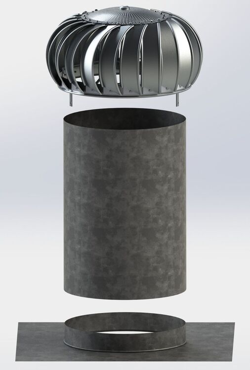 This set is suitable on cases where the turbine must be placed above the surface of the roof to catch sufficient force wind power. The set consists of the most powerful Lomanco TIB 14" turbine, in the aluminium version, a 50 cm extension part and a square base. The base and extension are made of galvanized steel.