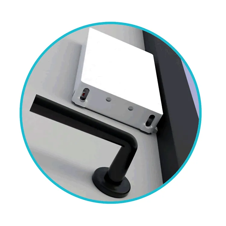 Automatically delivers a dose of atomised liquid sterilizer to door handles every time the door is used.