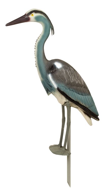 Standing nearly 3-feet tall this heron decoy (Height 86cm / 34 Inches) is great for protecting ponds. The heron is a territorial bird and should not visit a pond where it sees another fishing. This means any heron flying by, will see the decoy sitting at the pond and fly on to find another one.