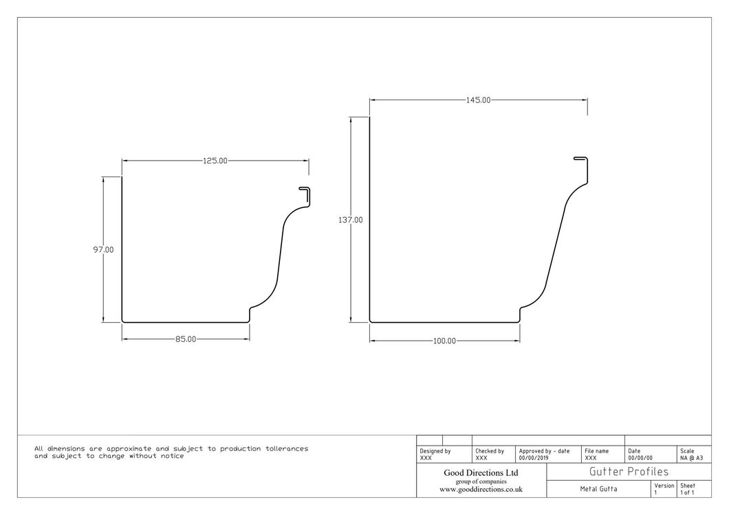 • Ogee and Box gutters require internal joints for the guttering / running outlets / corners